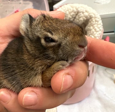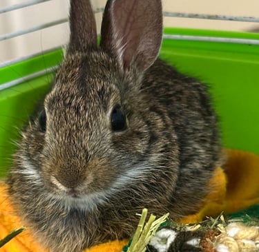 This little bunny came in after being brought in by a cat. There were puncture wounds on its side, but luckily after antibiotics and treatment she was healed and released!